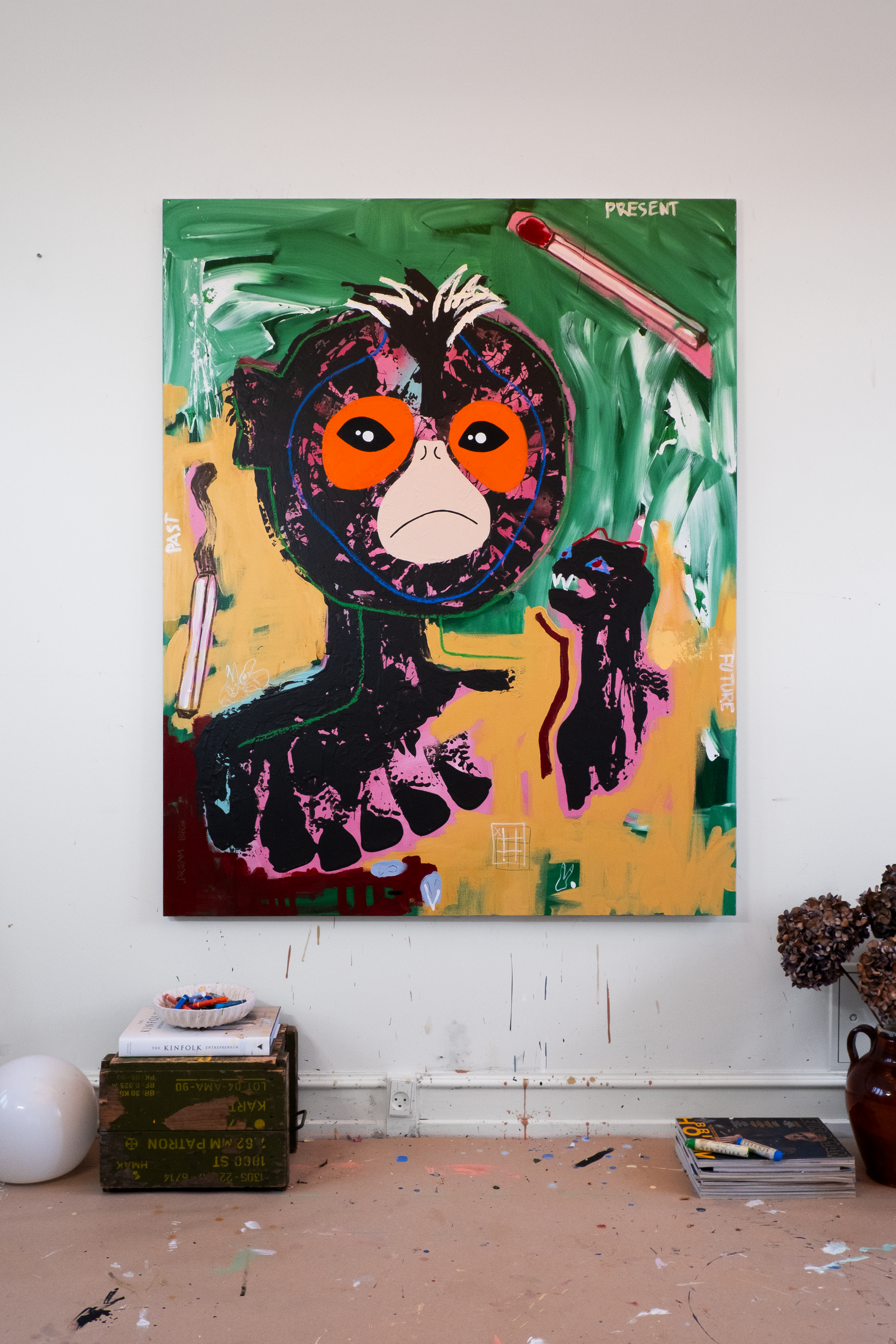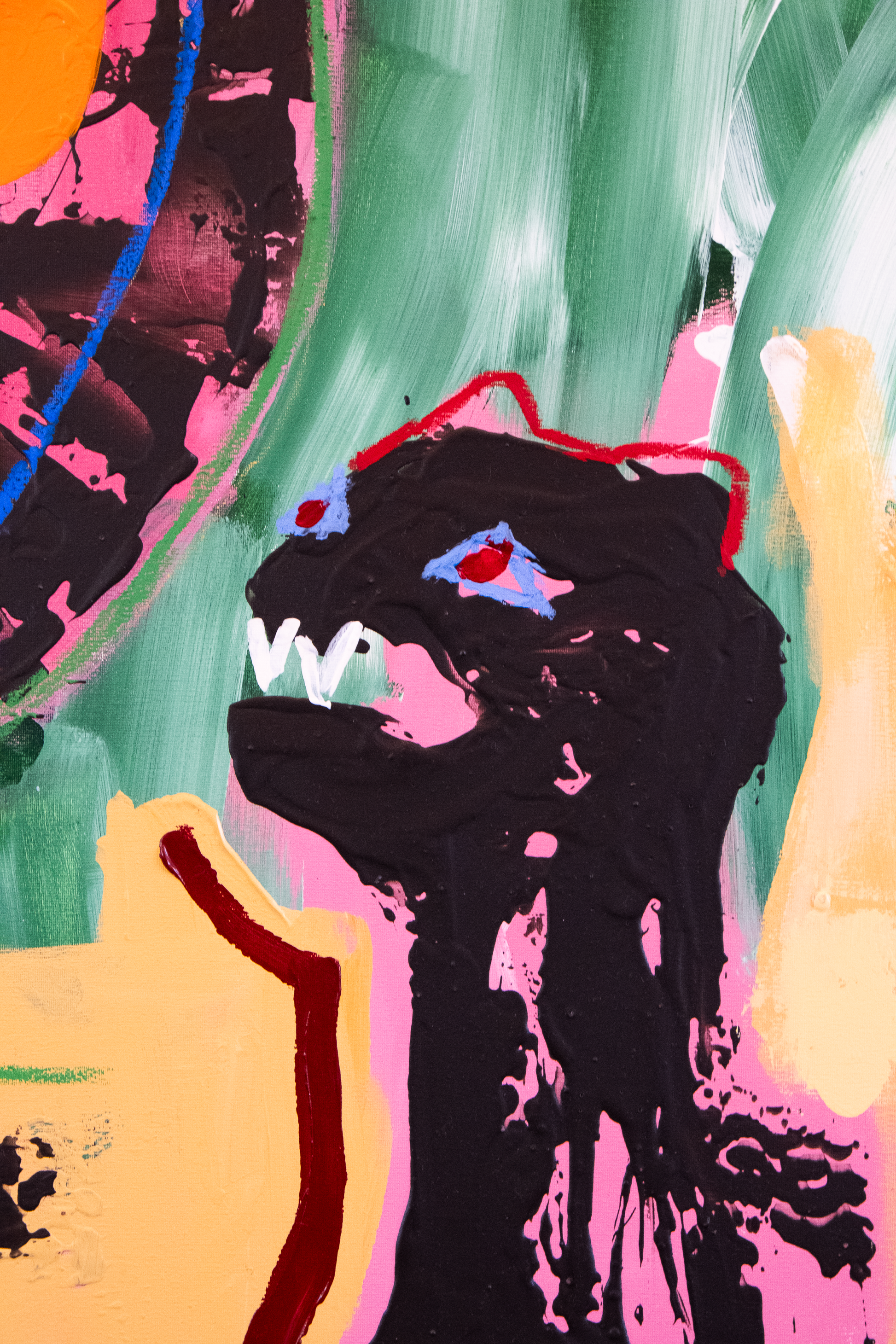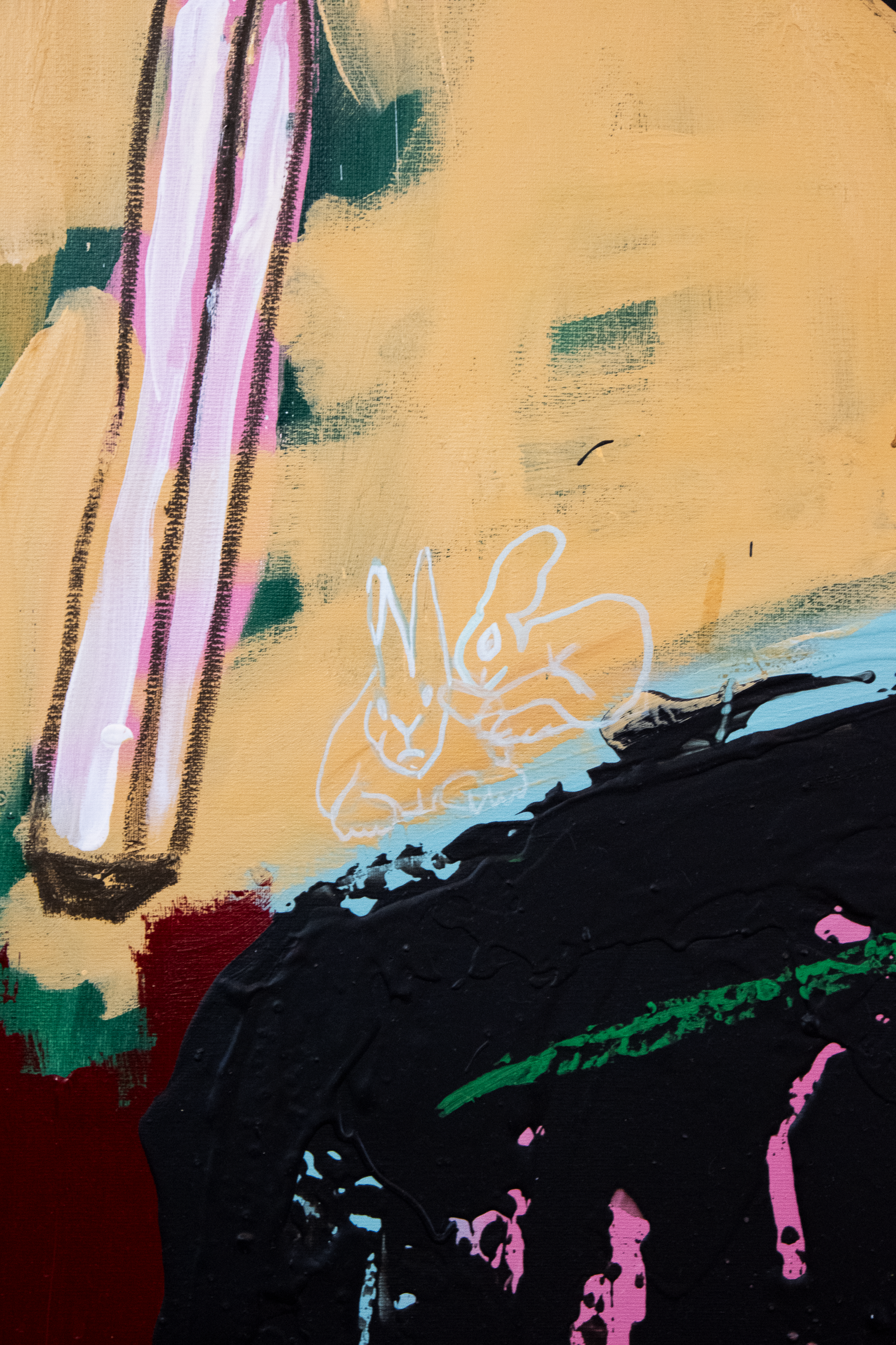 ”A daily choice”, 2024Acrylic, sand, cement, oilpastel- and sticks on canvas120x130 cm