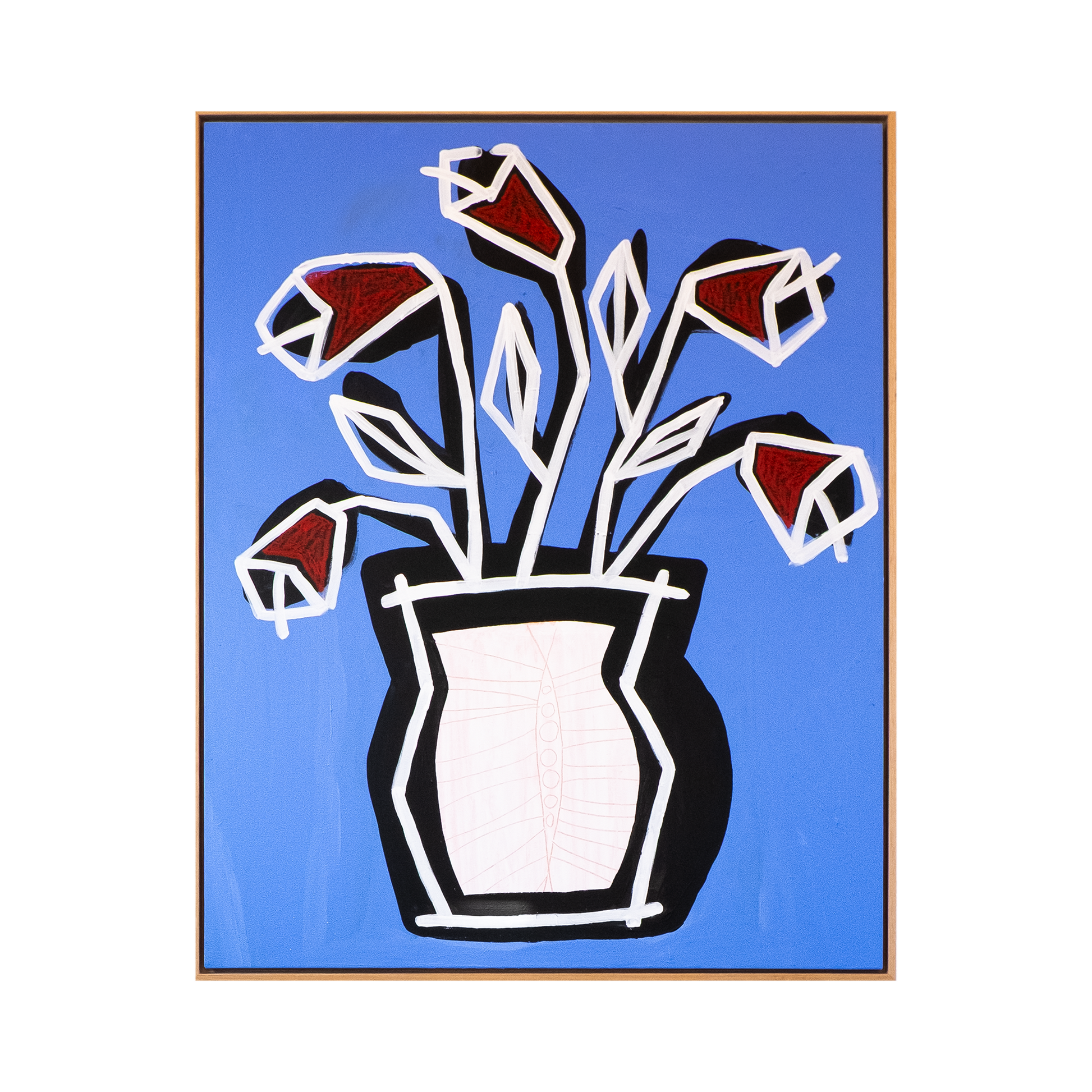 "Red Flowers”, 2025Acrylic, oilpastel- and sticks on canvas100x120 cm