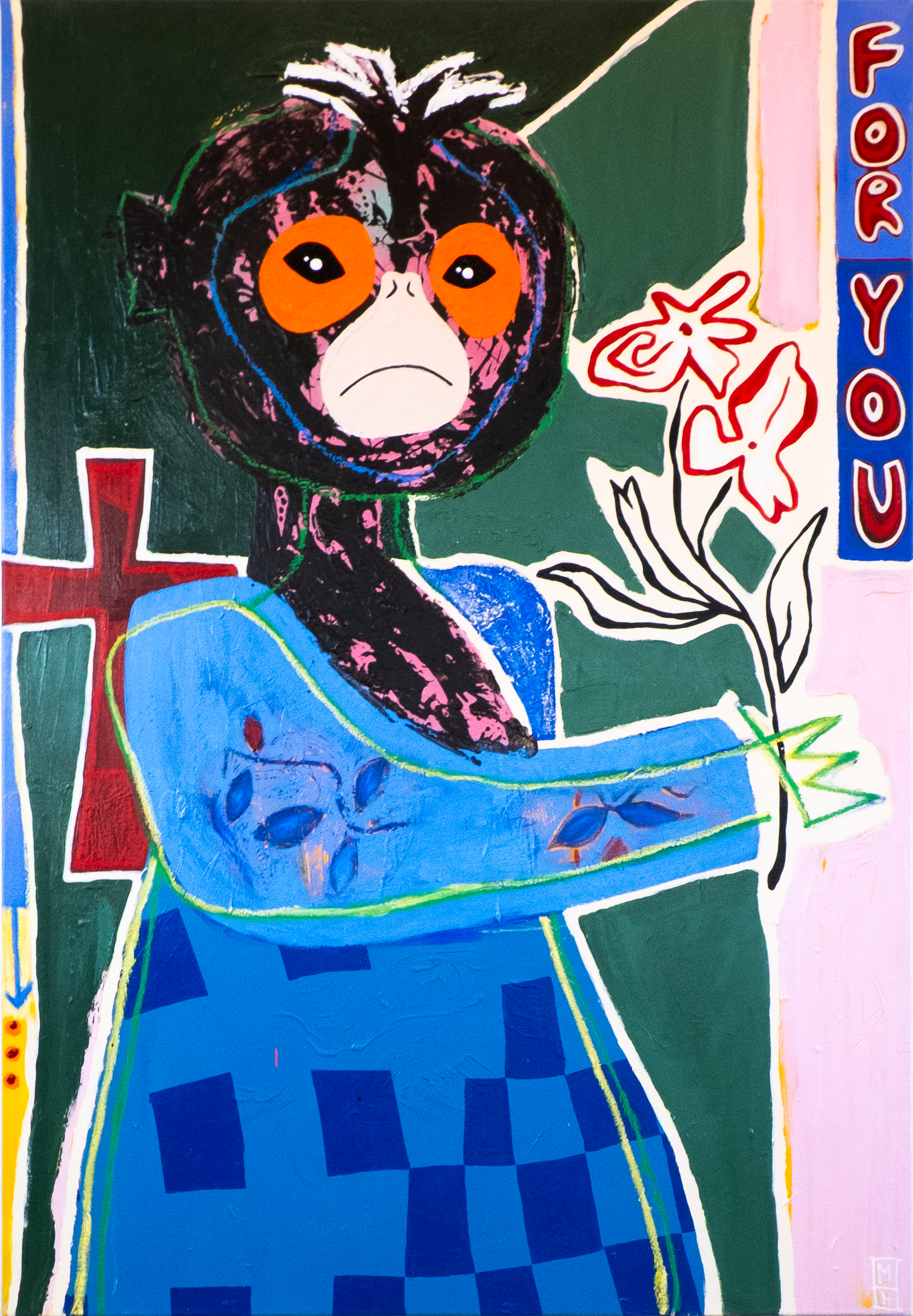 ”Date yourself”, 2024Acrylic, oilpastel and oilsticks on canvas90 x 130 cm
